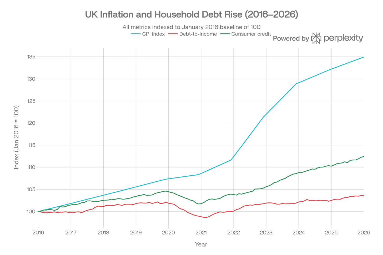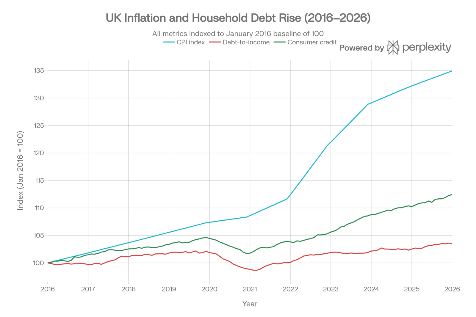 But here’s the trap: the customer who could comfortably spend £500 in 2015 is now carrying more unsecured debt, a higher mortgage rate (if they have a mortgage), and £140 worth of permanent price increases on their food, rent and energy. They’re not necessarily poorer on paper. But they’re financially tighter in reality. The discretionary budget that your jacket lives in? That’s the first place it gets squeezed.