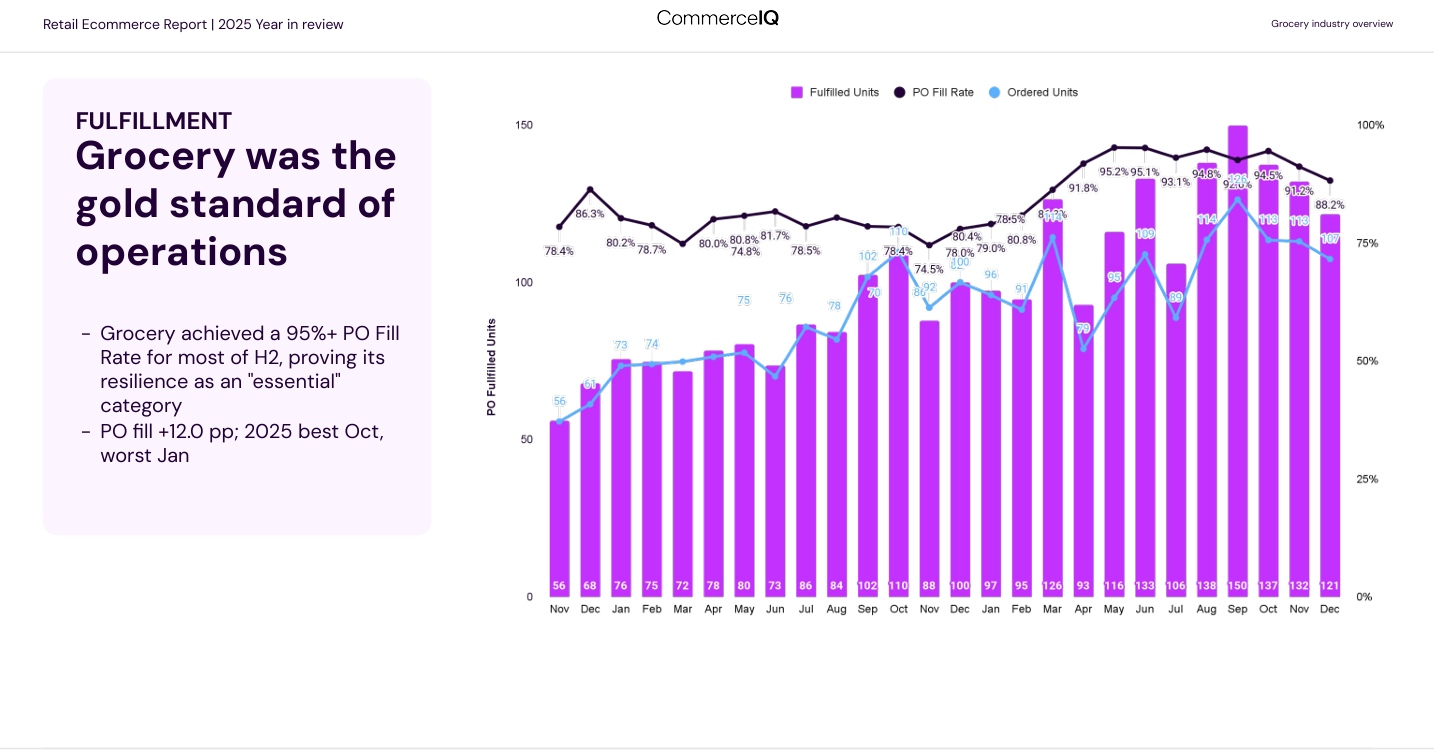 Metric2025 PerformanceThe “V” PerspectiveRevenue+5.5%Growth through volume, not value.Unit Margins-2.6 ppThe “little death” of profitability.Ad Spend+19.6%Aggression as a defensive strategy.PO Fill Rate77.1% → 90.2%Sharp execution finally arrived.